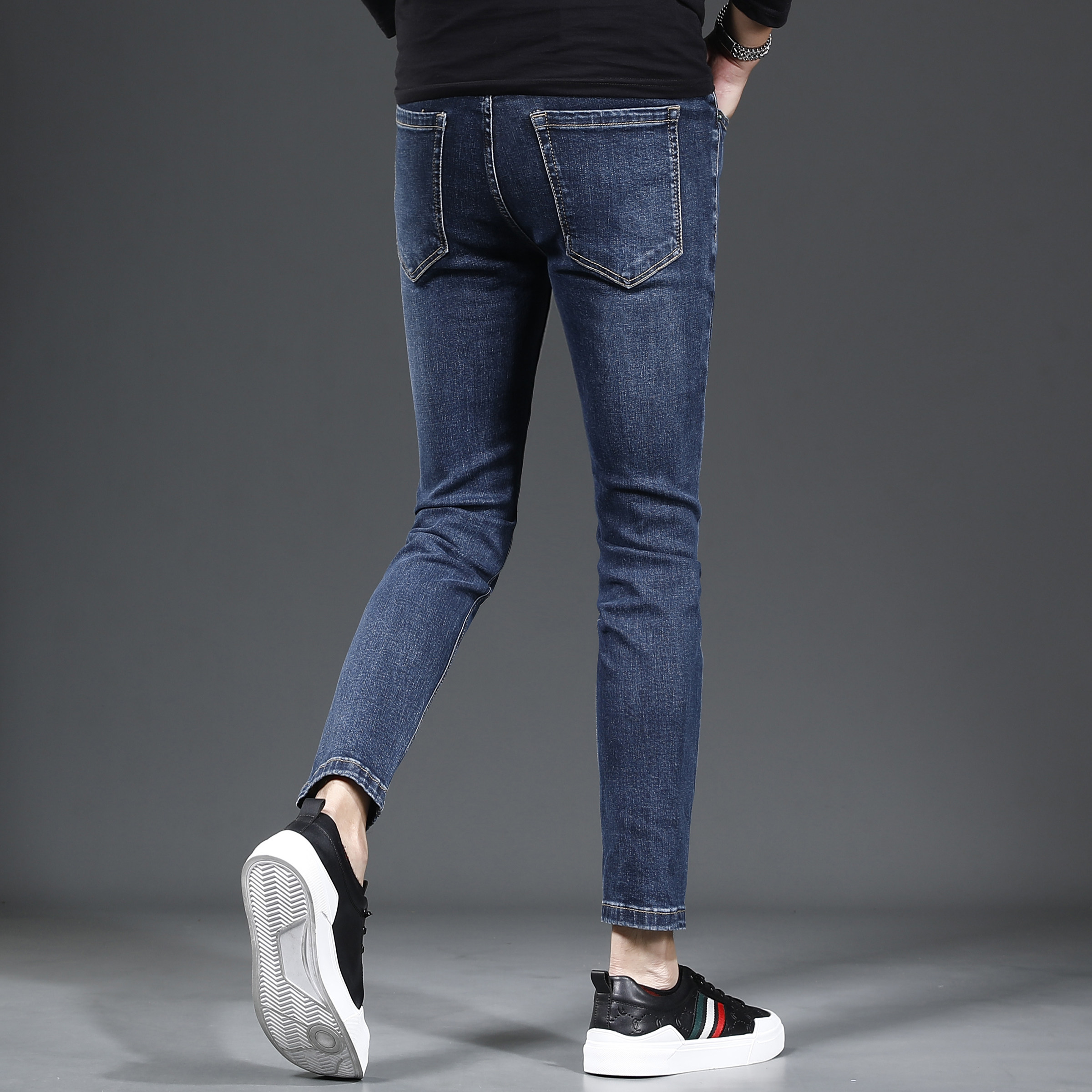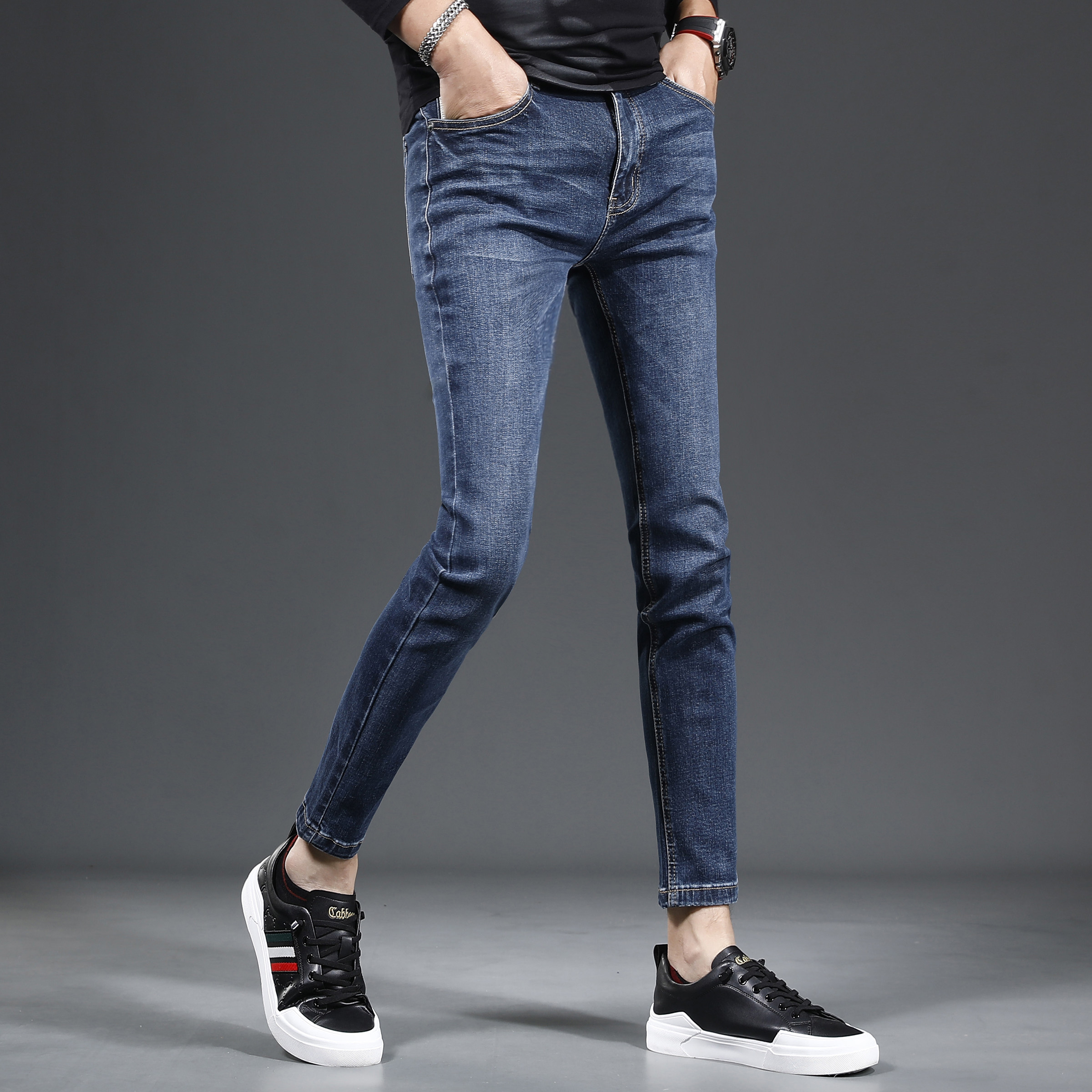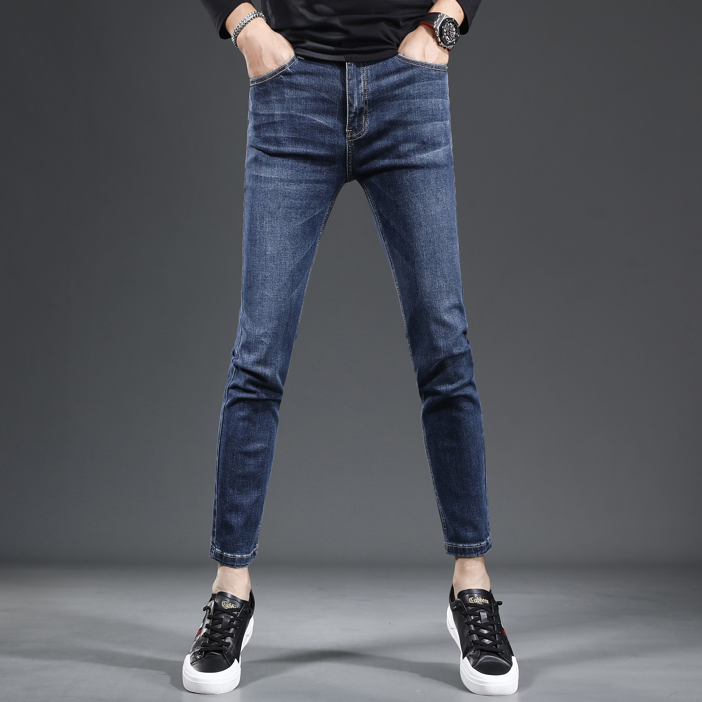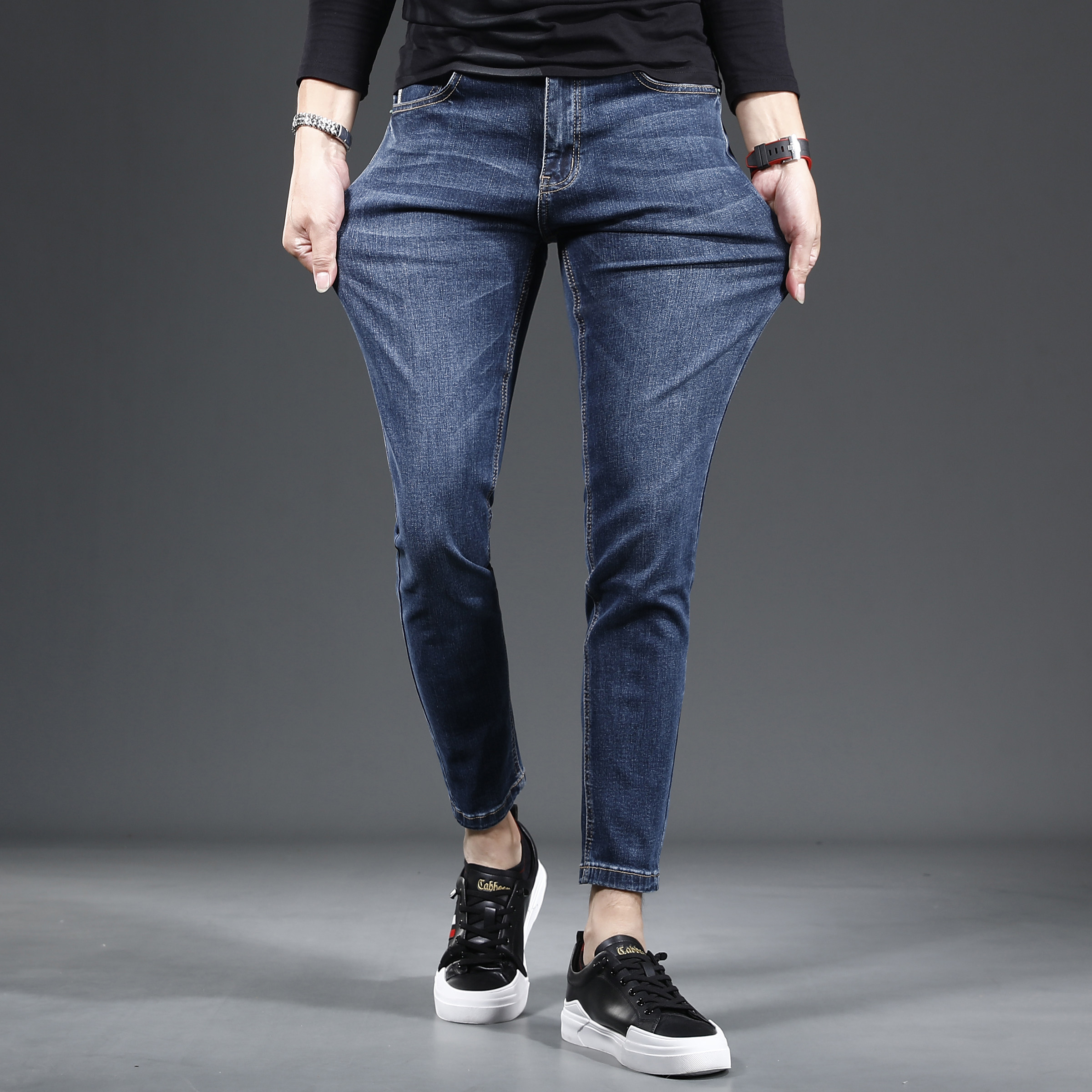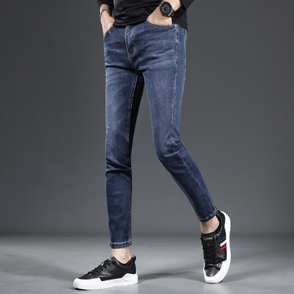 九分牛仔裤男2023新款秋季修身小脚高档蓝色百搭男士裤子潮流9分