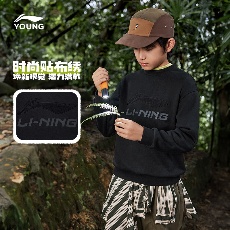 李宁童装儿童卫衣男女大童2025秋冬新款圆领加绒宽松运动休闲上衣