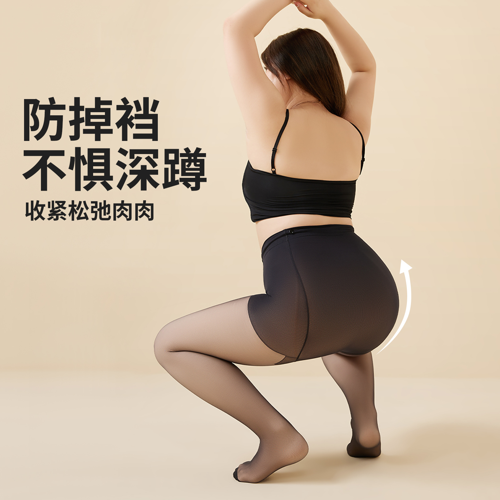 大码加绒黑色丝袜光腿神器女春秋冬季裸感双层黑透肤连裤袜打底裤