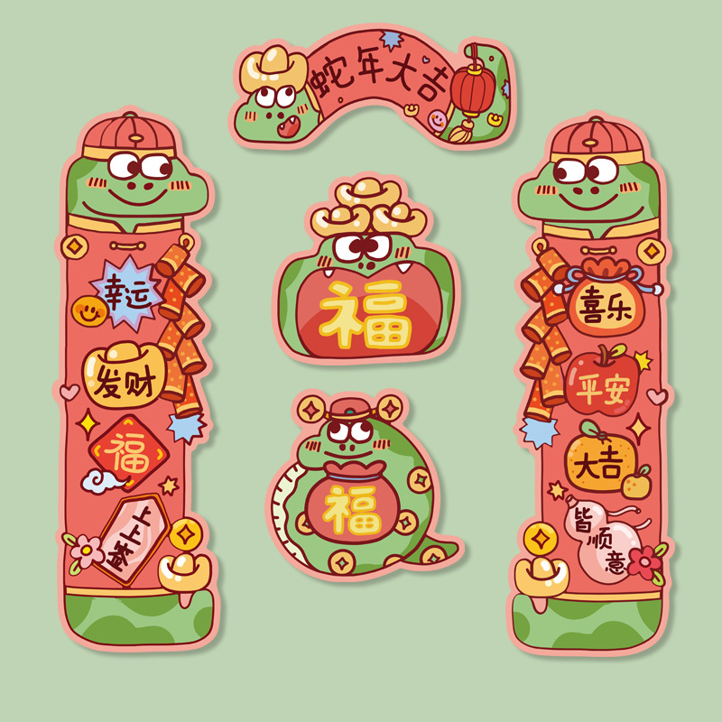 马年磁吸对联门贴2026新款春联可爱卡通入户门装饰春节迷你小对联
