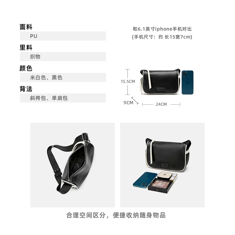 卓诗尼女包斜挎包休闲宽带2024新款黑色包包女商场同款线下专柜