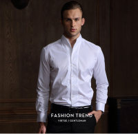 富绅中式白色男立领长袖衬衫修身青年中山装衬衣商务春秋季纯色衬