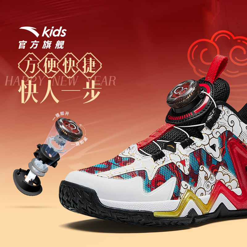 逆鳞新年款稳步鞋|安踏儿童篮球鞋2026缓震回弹旋钮扣防滑运动鞋