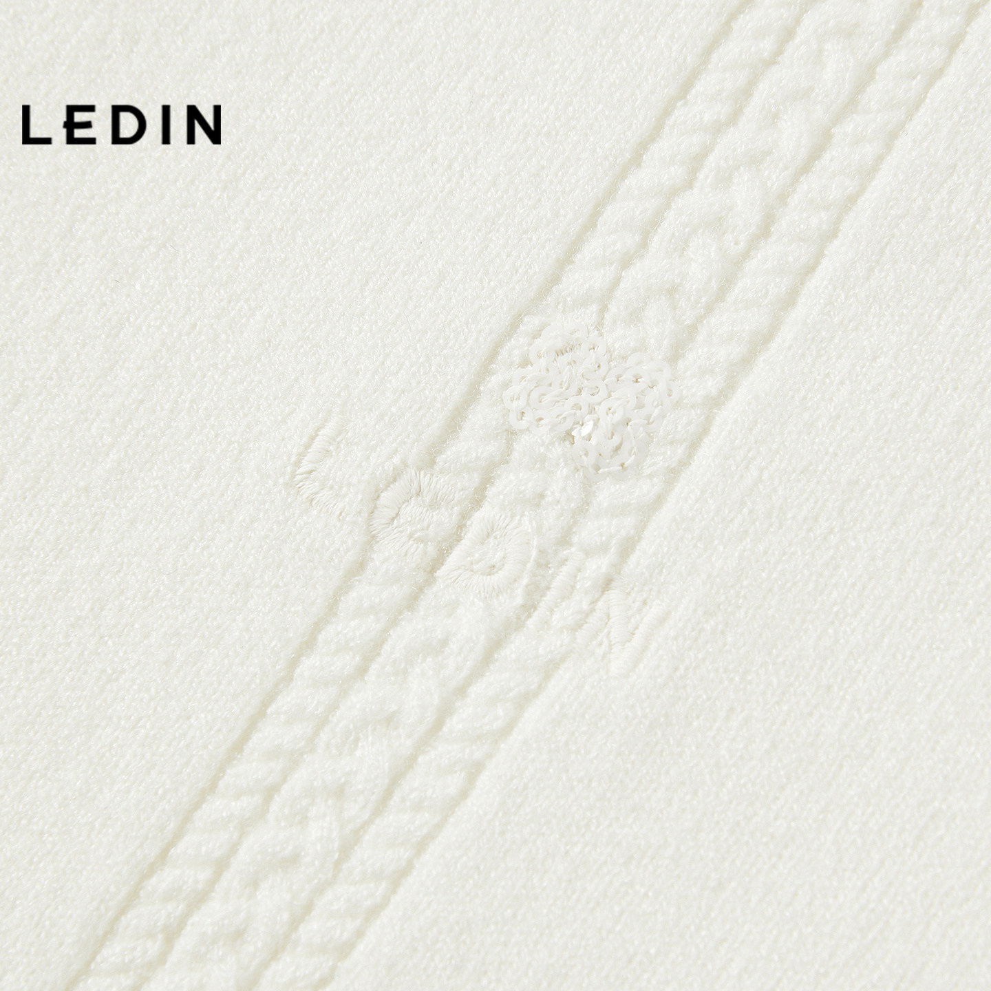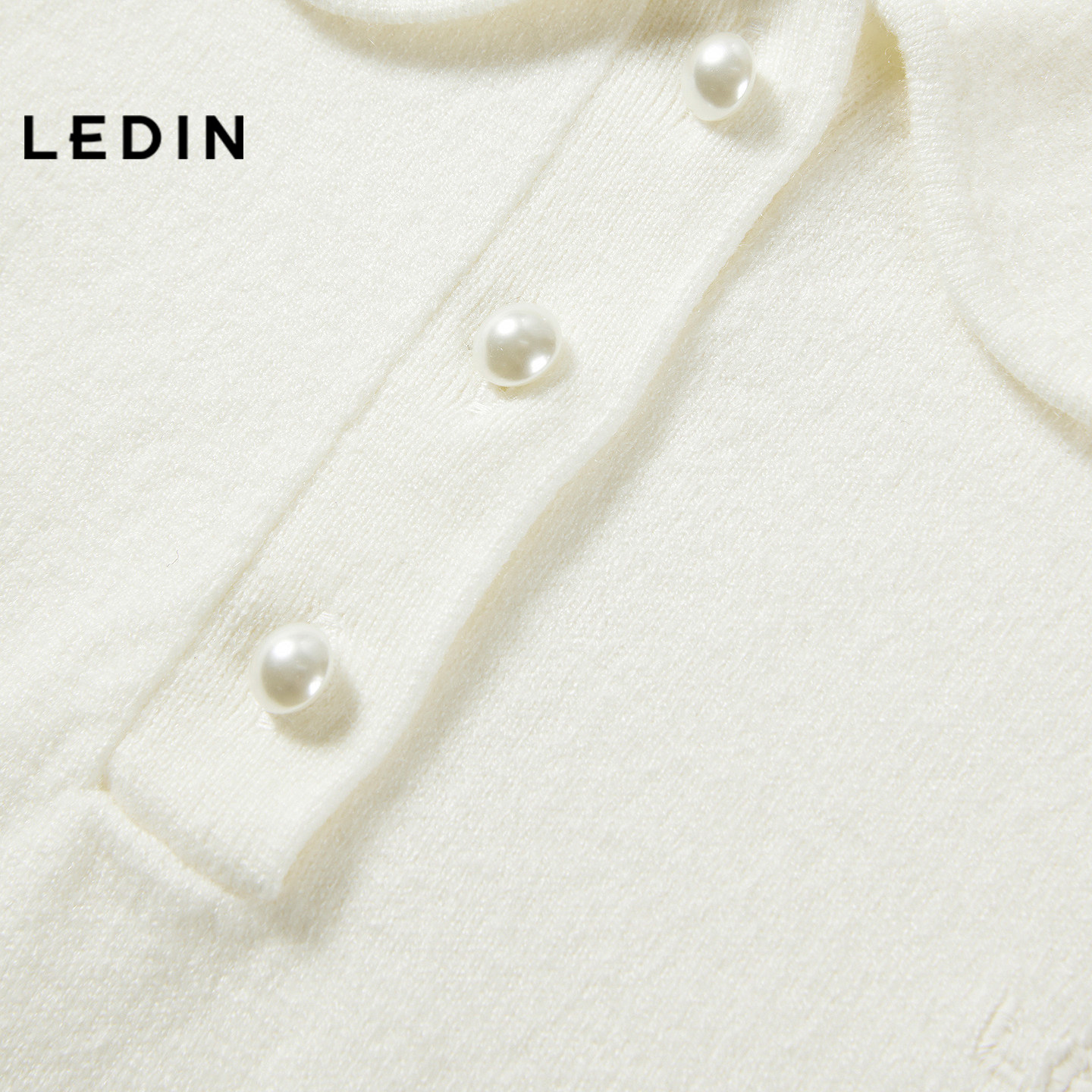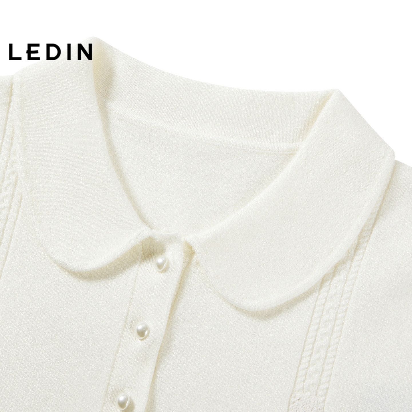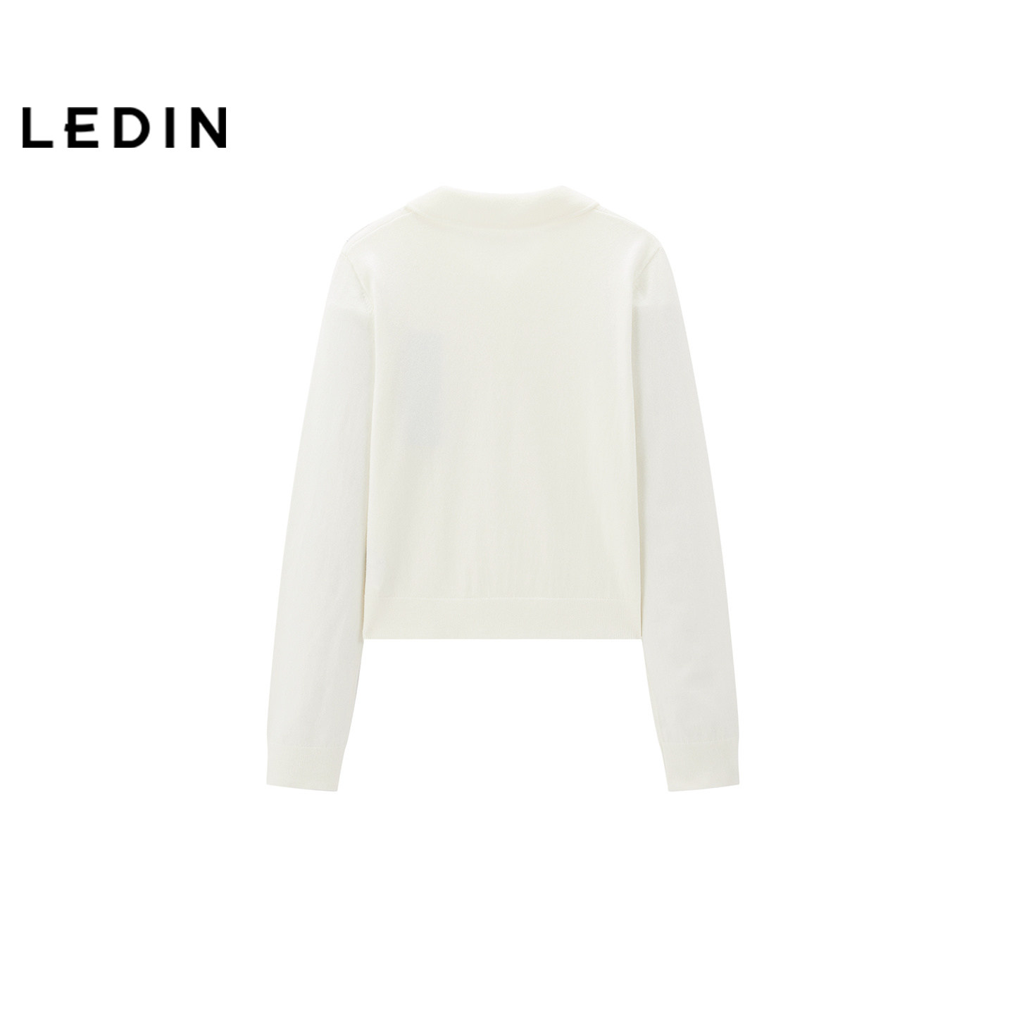 【商场同款】乐町甜美翻领合体针织衫春新款珠片绣毛衣C1EEG1137