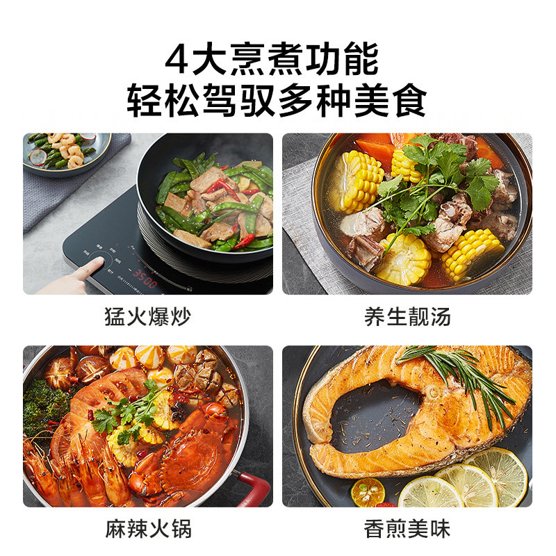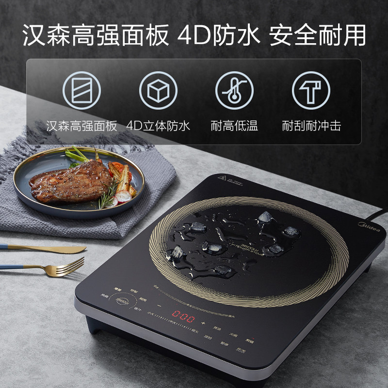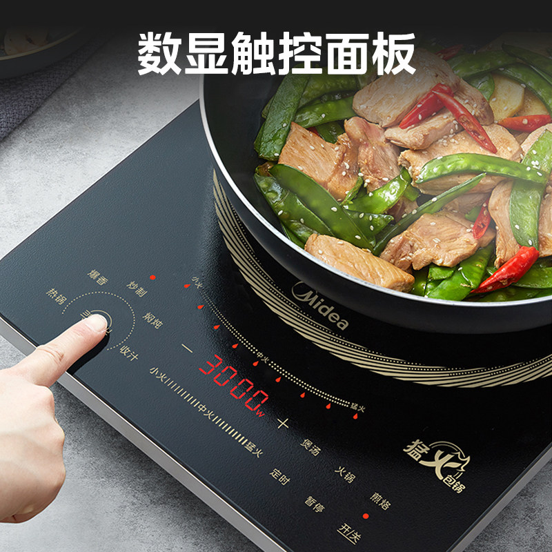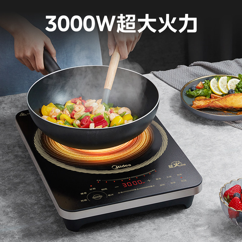 美的电磁炉3000W家用大功率多功能猛火爆炒1体黑晶面板火锅炒菜灶