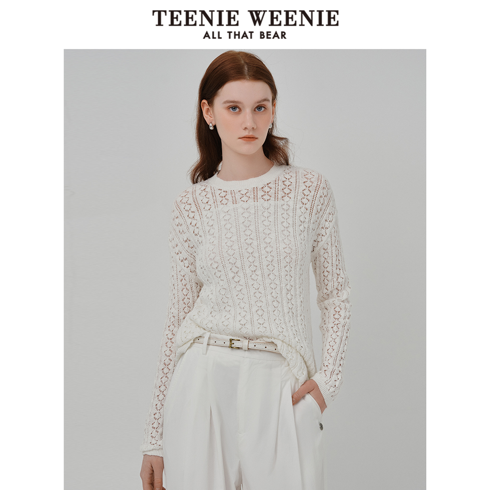 TeenieWeenie小熊女装毛衣2025秋新款圆领慵懒气质时尚镂空针织衫
