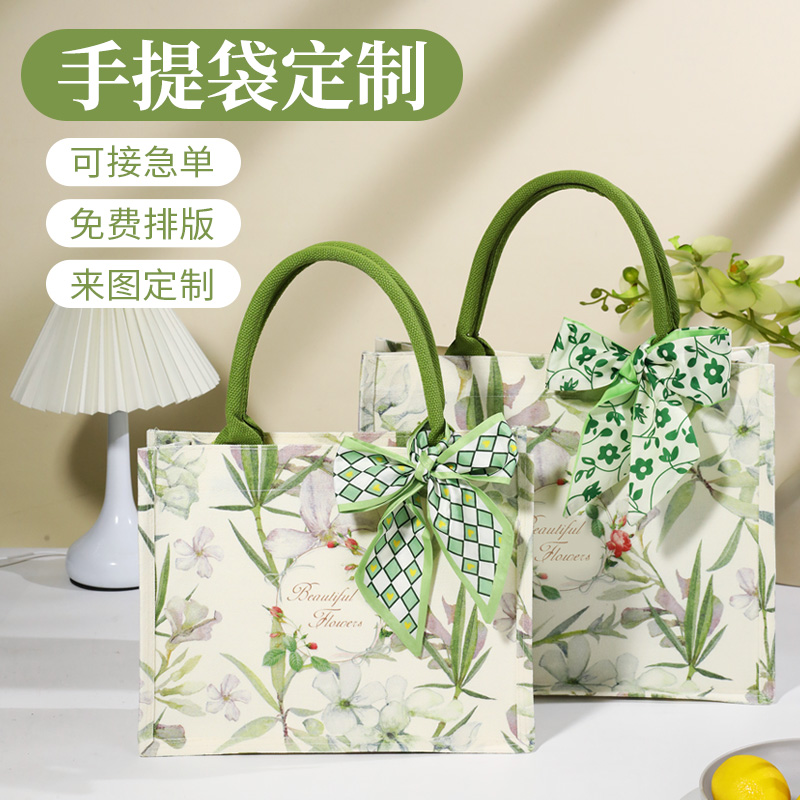手提袋可定制logo帆布袋麻料环保公司活动礼品袋高档简约收纳包
