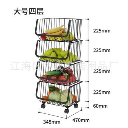 多层落地置物架金属多功能小推车蔬菜水果收纳框厨房置物架储物架