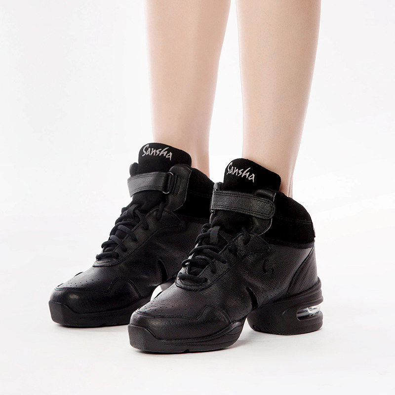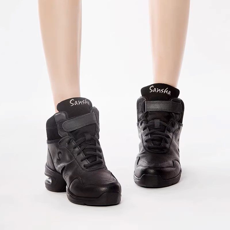 Sansha 法国三沙运动舞蹈鞋皮面气垫现代舞鞋加绒高帮鞋广场舞鞋