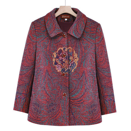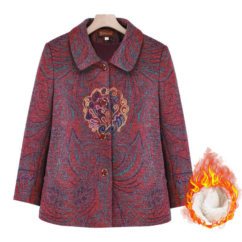 奶奶春秋唐装外套中老年人女妈妈装秋冬加绒老太太上衣服翻领