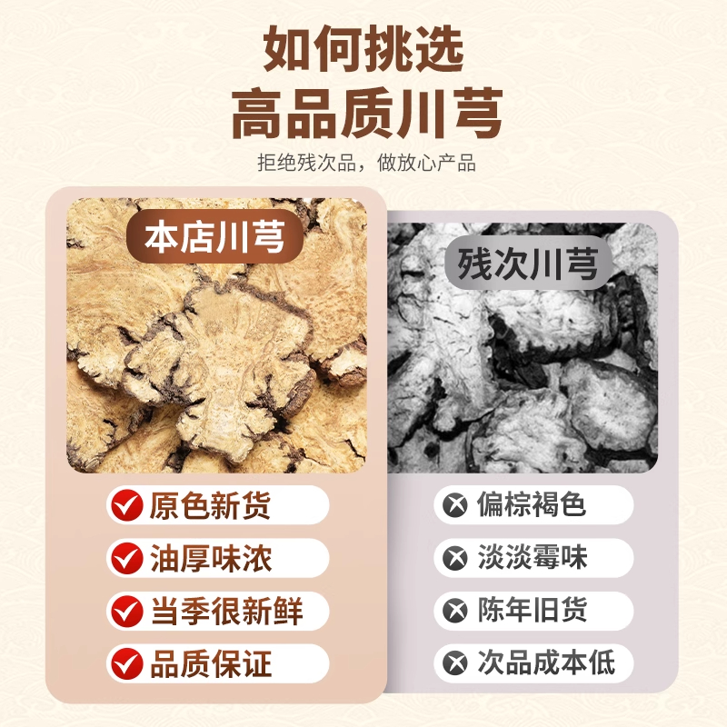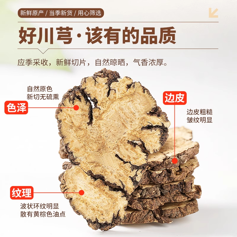 川芎中药材正品500g官方旗舰店新鲜干货川弓片川穹粉泡茶喝四物汤