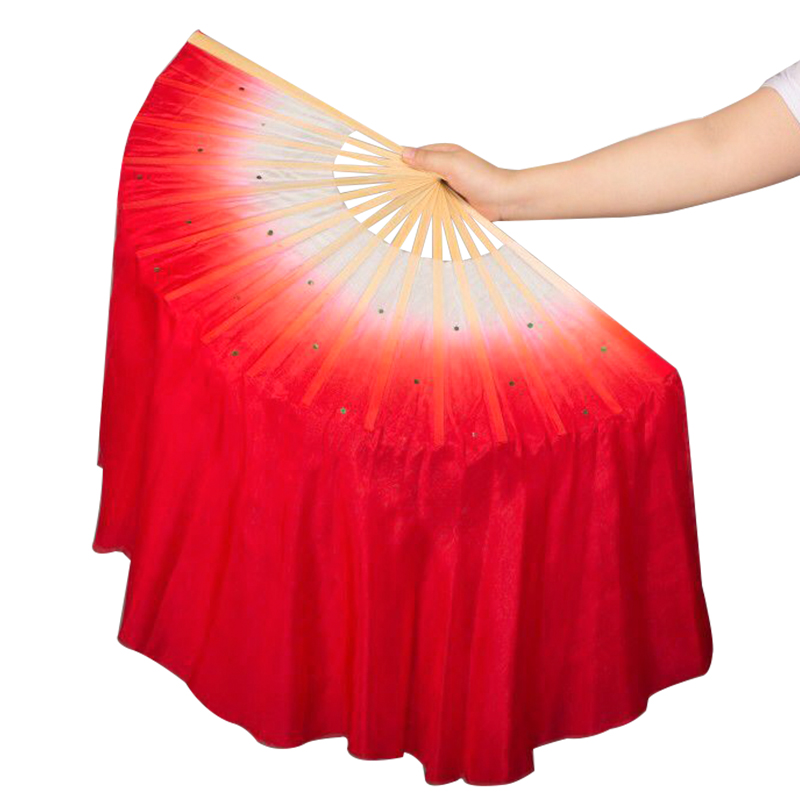 江山真丝红扇万疆舞蹈扇子加长双面扇渐变色跳舞扇胶州秧歌扇九儿