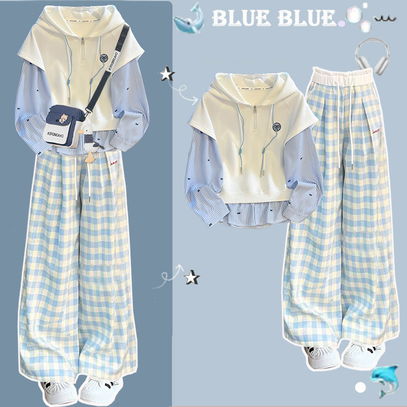 女童秋装巨好看连帽卫衣套装2025春秋新款中大童蕾丝格子裤两件套
