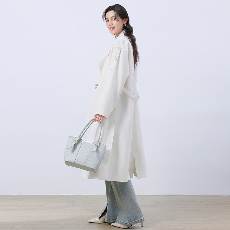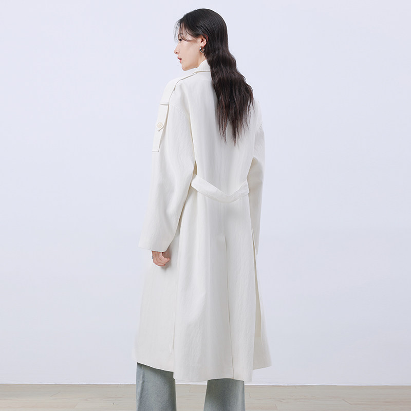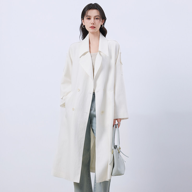 GCRUES商场同款双排扣风衣女中长款2025白色春季外套 G01C05A1962