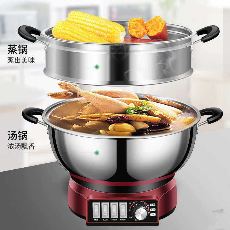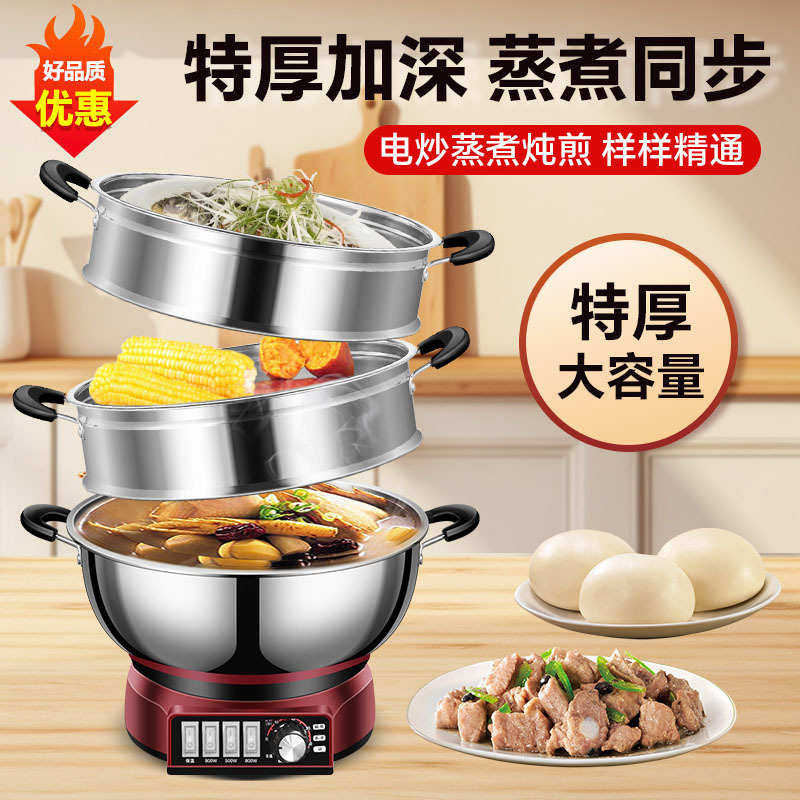 多功能电热锅不锈钢电炒锅家用电热锅电煮锅蒸锅炖锅一体