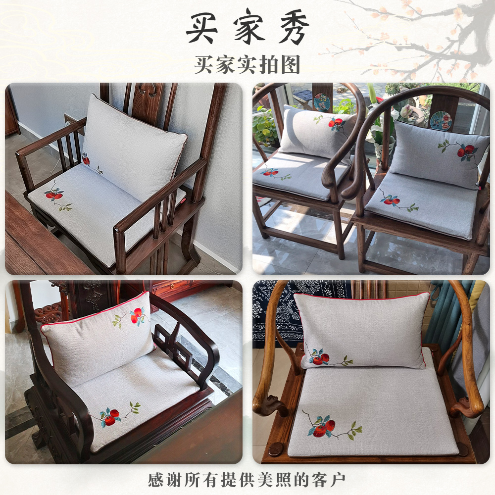 中式椅垫红木沙发坐垫古典实木椅子棉麻垫子圈椅茶椅餐椅座垫定做