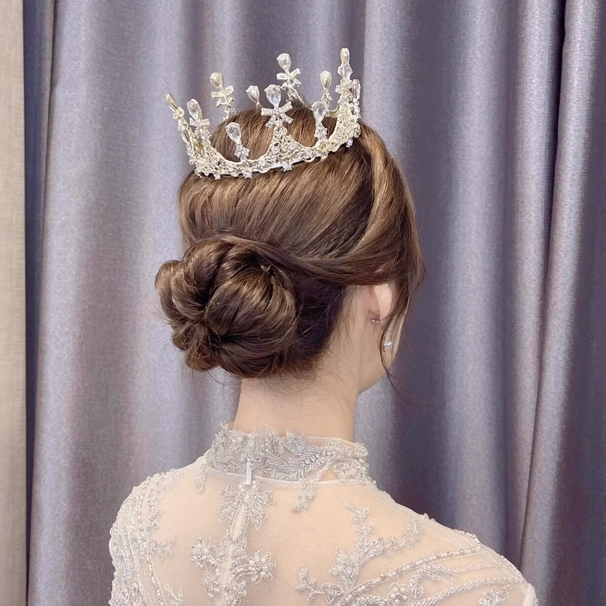 韩系新娘发饰简约精致小皇冠水晶镶钻公主生日王冠婚纱礼服配饰品