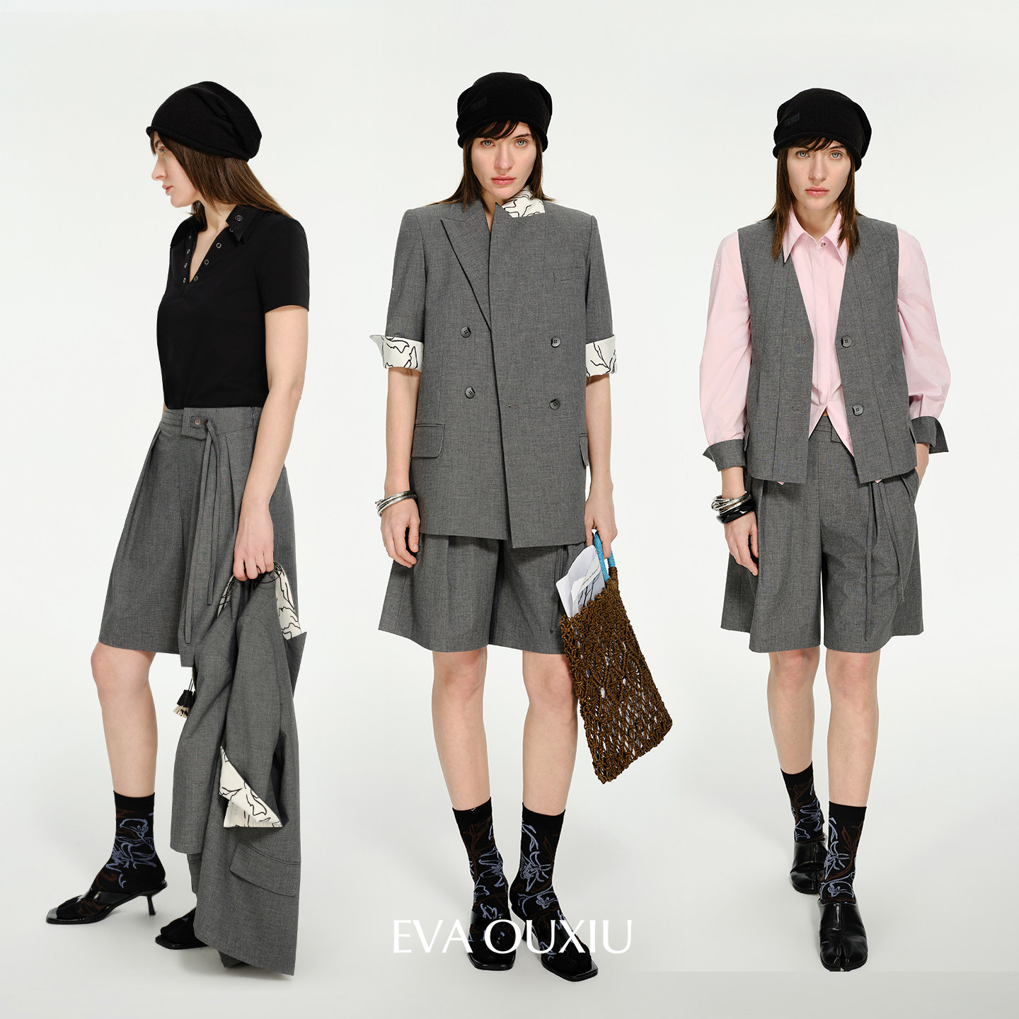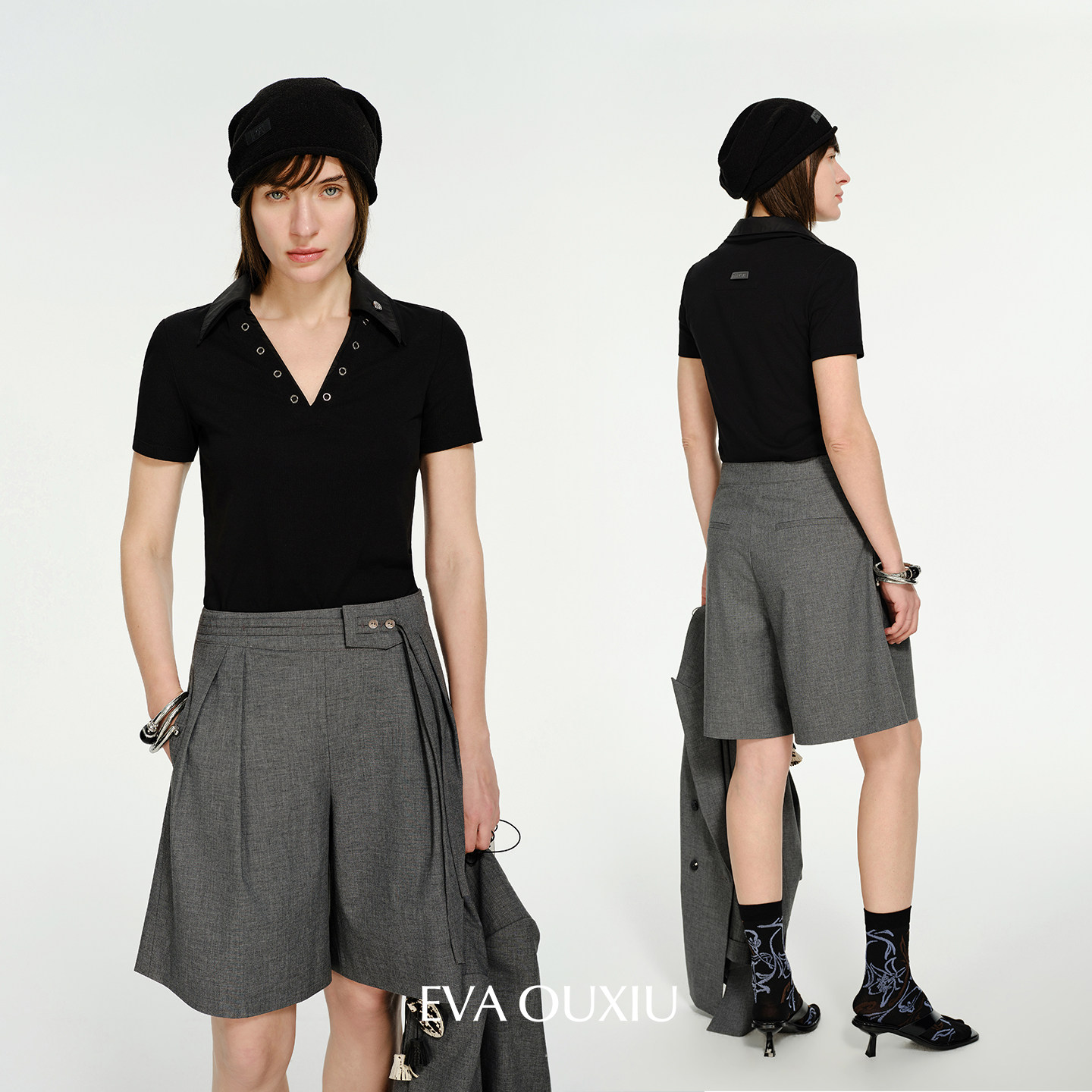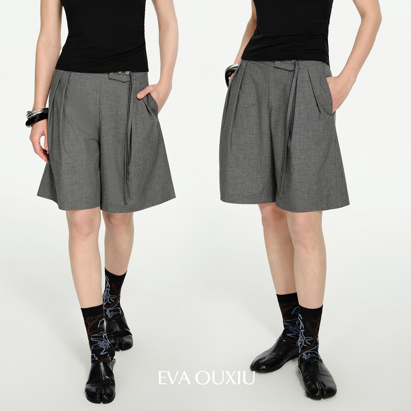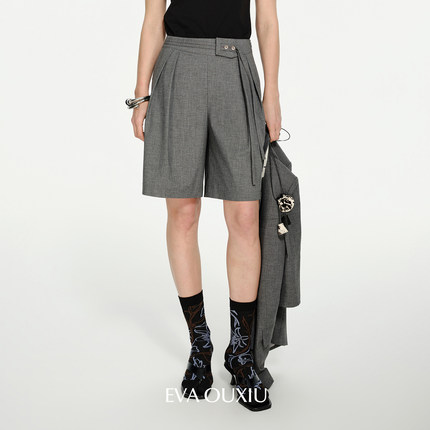 EVAOUXIU商场同款阔腿直筒短款裤子