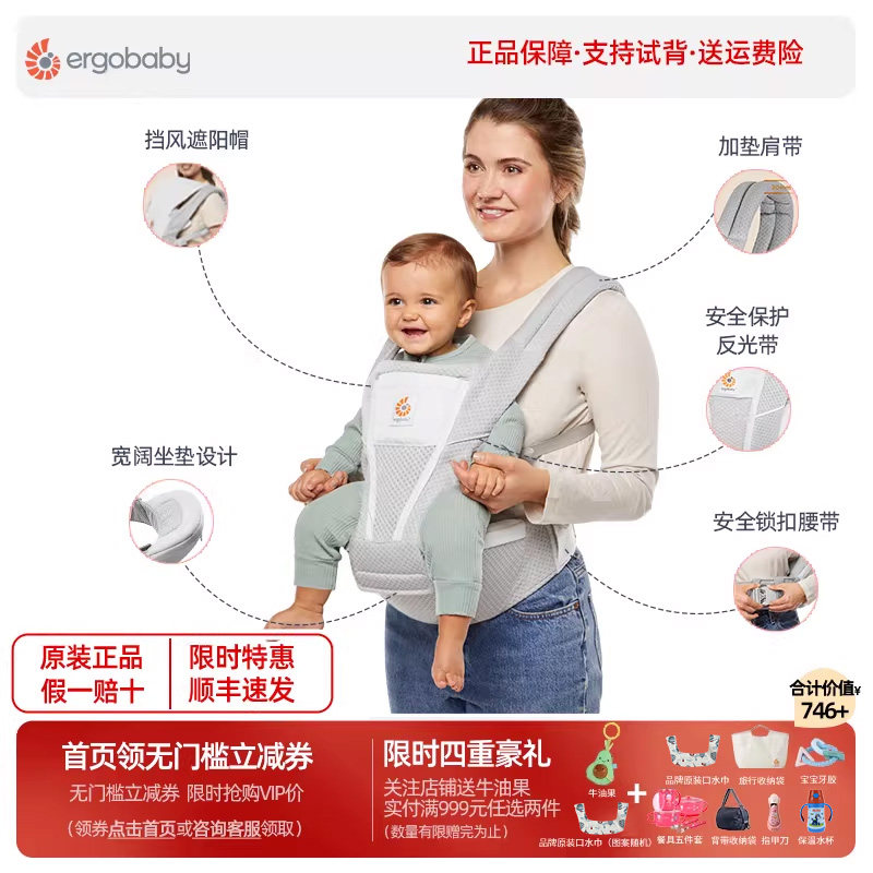 二狗婴儿腰凳ergobaby背带横抱轻便四季六式坐凳小月龄溜娃神器