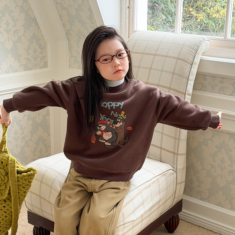 依依妈女童冬季韩版洋气卡通卫衣儿童宝宝加厚加绒保暖百搭上衣潮