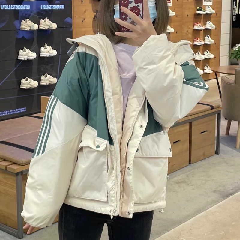 Adidas 三叶草 女款冬季运动休闲时尚拼色保暖宽松羽绒服 HS9518