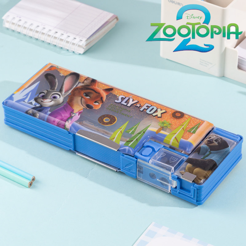 疯狂动物城梦幻流沙文具盒高颜值男孩子款儿童女生高科技梦幻小学生多功能塑料自动铅笔盒双层迪士尼一年级