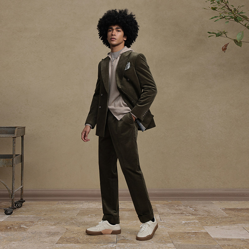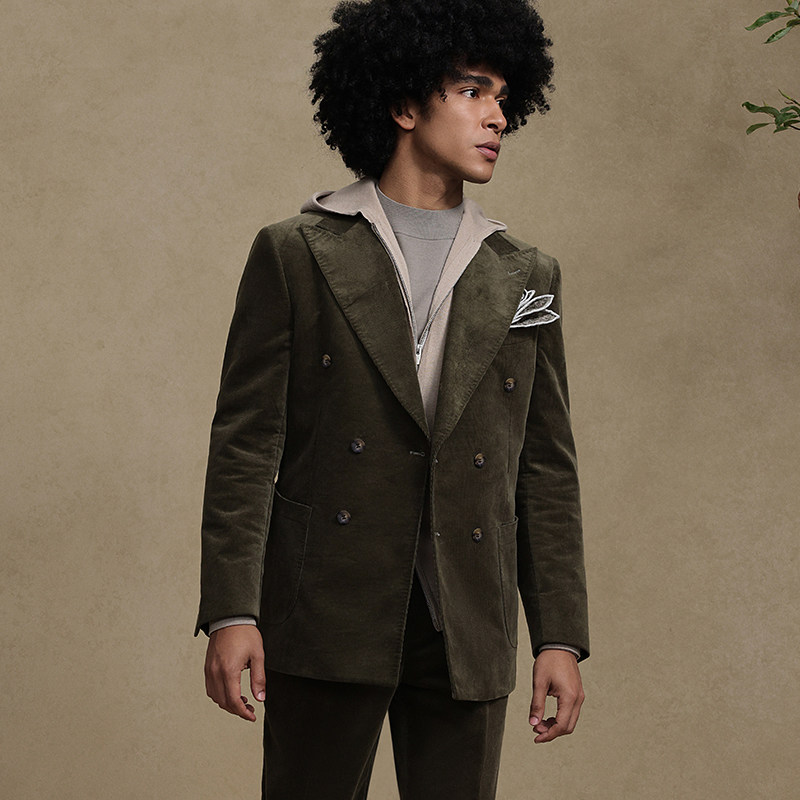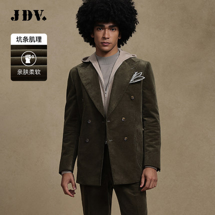 JDV商场同款秋冬季戗驳领双排扣男士西装灯芯绒西服外套WMJ4026