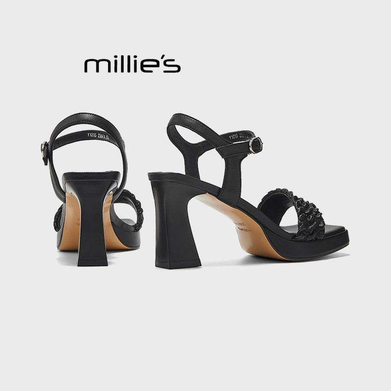 MILLIE'S/妙丽露趾粗跟凉鞋女