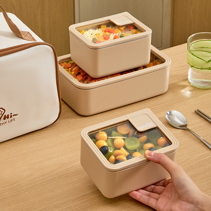 不锈钢保温饭盒上班族专用微波炉加热大容量便携带饭水果便当餐盒