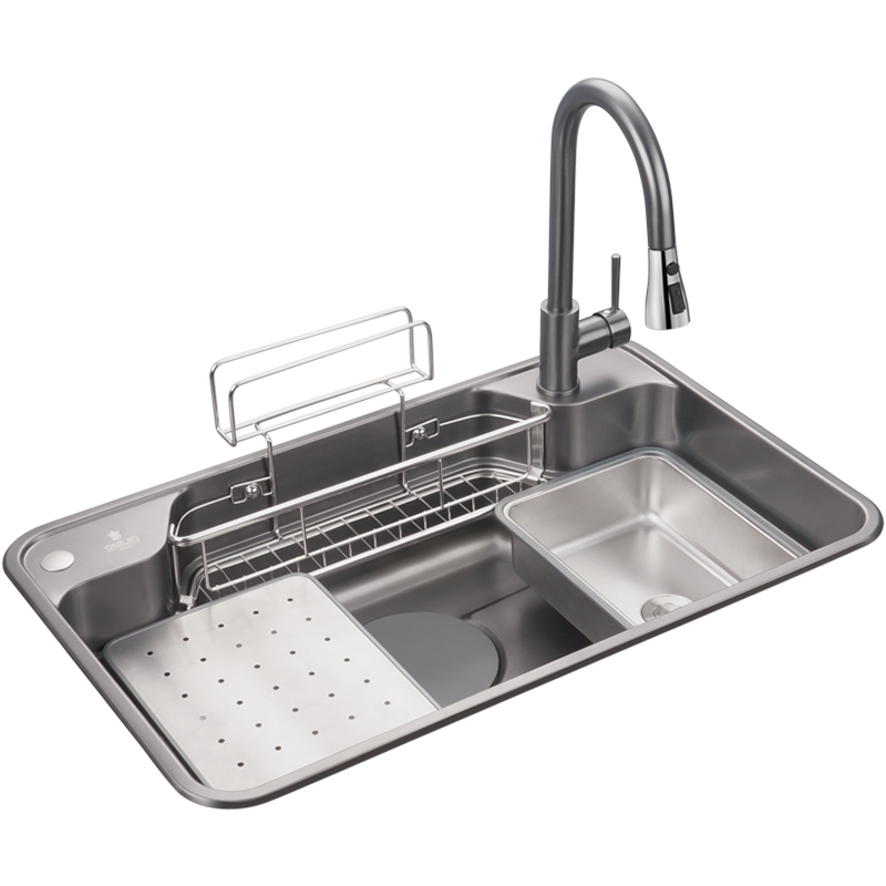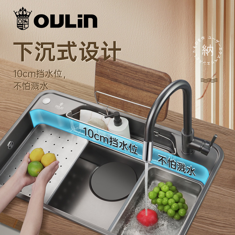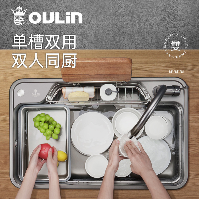 欧琳(OULIN)家用水槽套餐不锈钢水池台盆9129H+CFL008H抽拉龙头