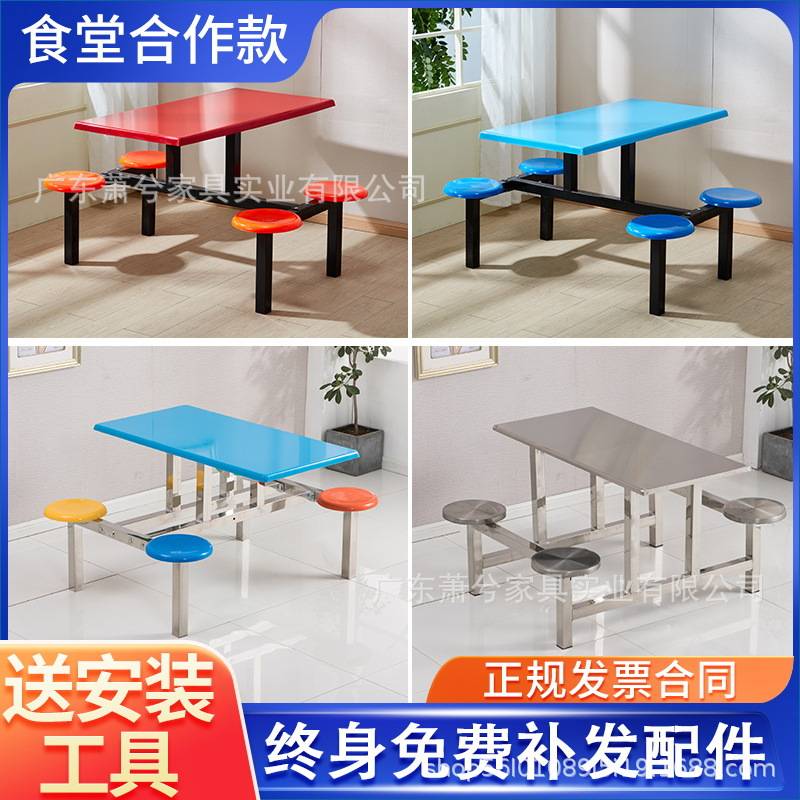 食堂餐桌椅不锈钢餐桌学校学生员工厂4人6人8人连体快餐桌椅组合