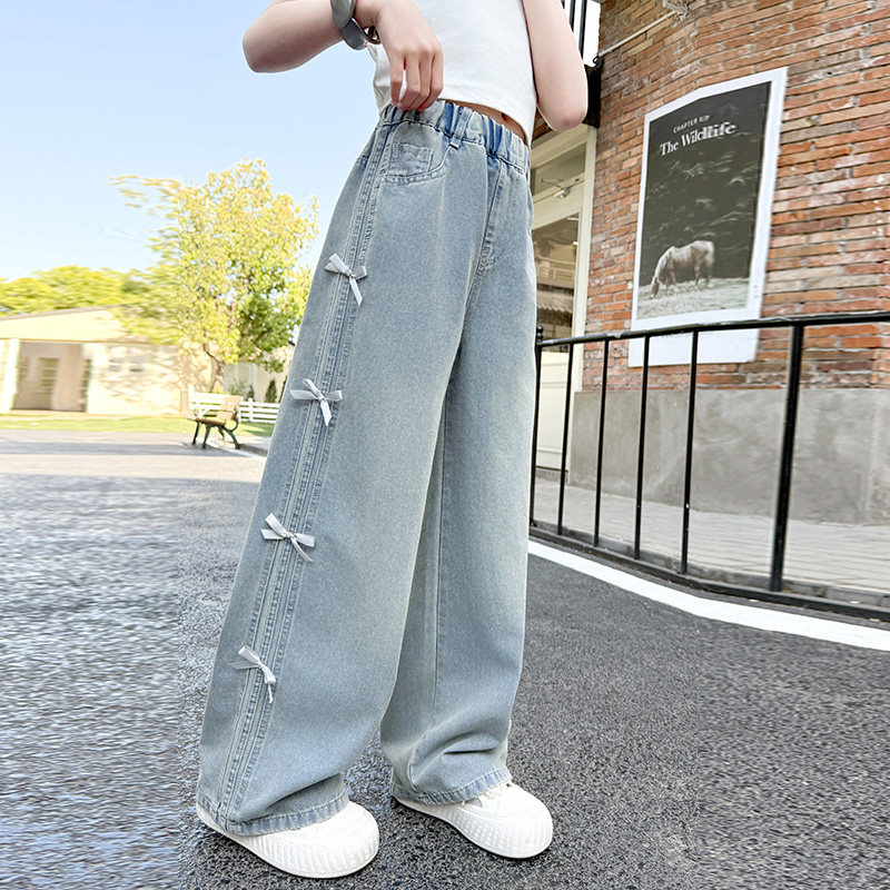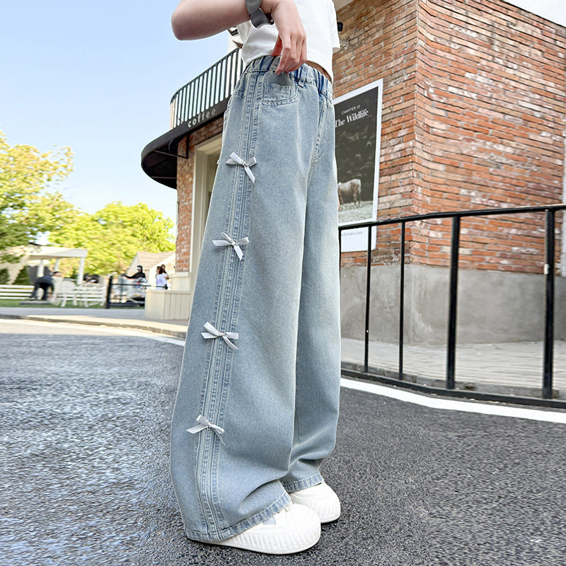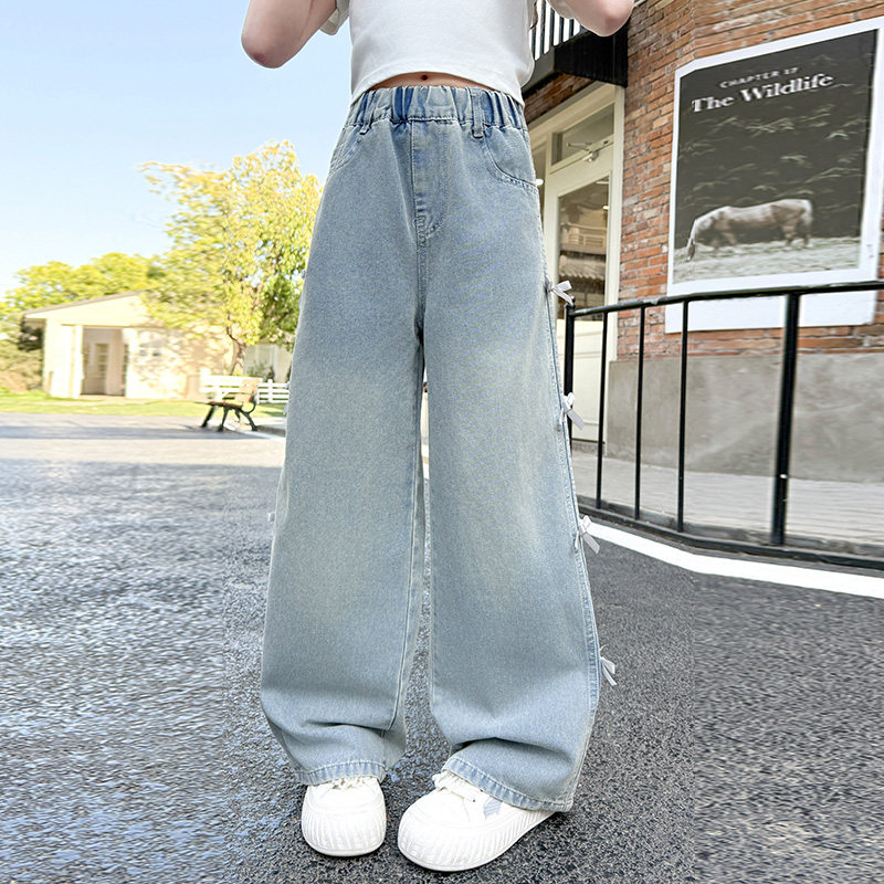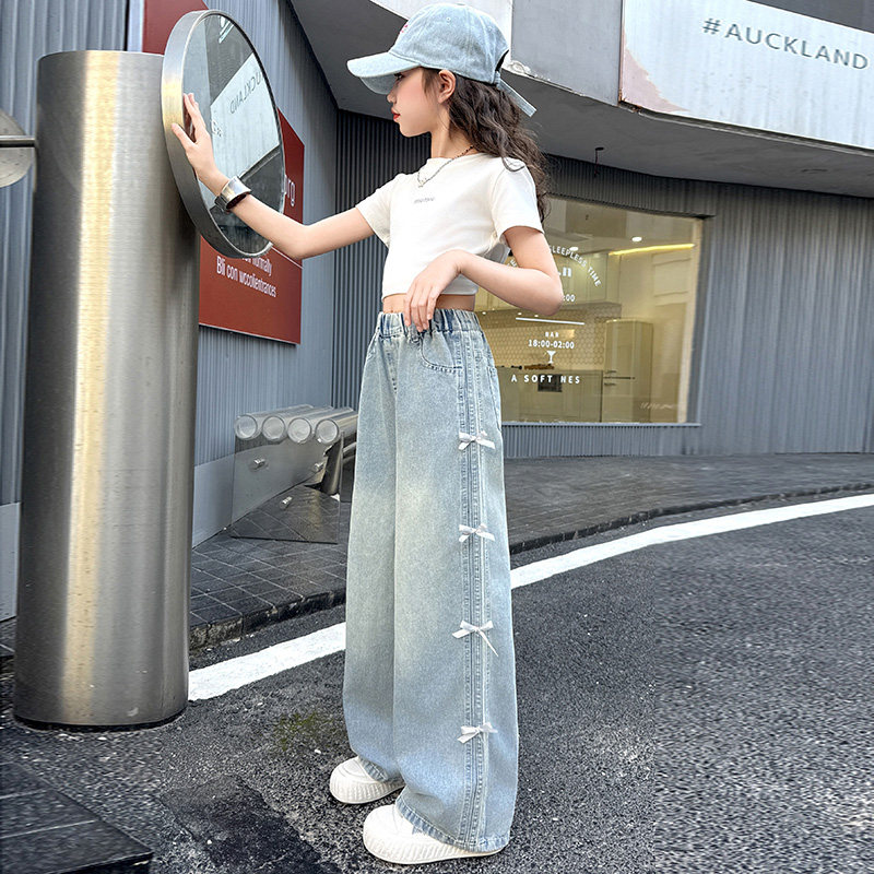 女童夏季裤子薄款2025新款女大童阔腿裤初中生凉感天丝牛仔裤直筒
