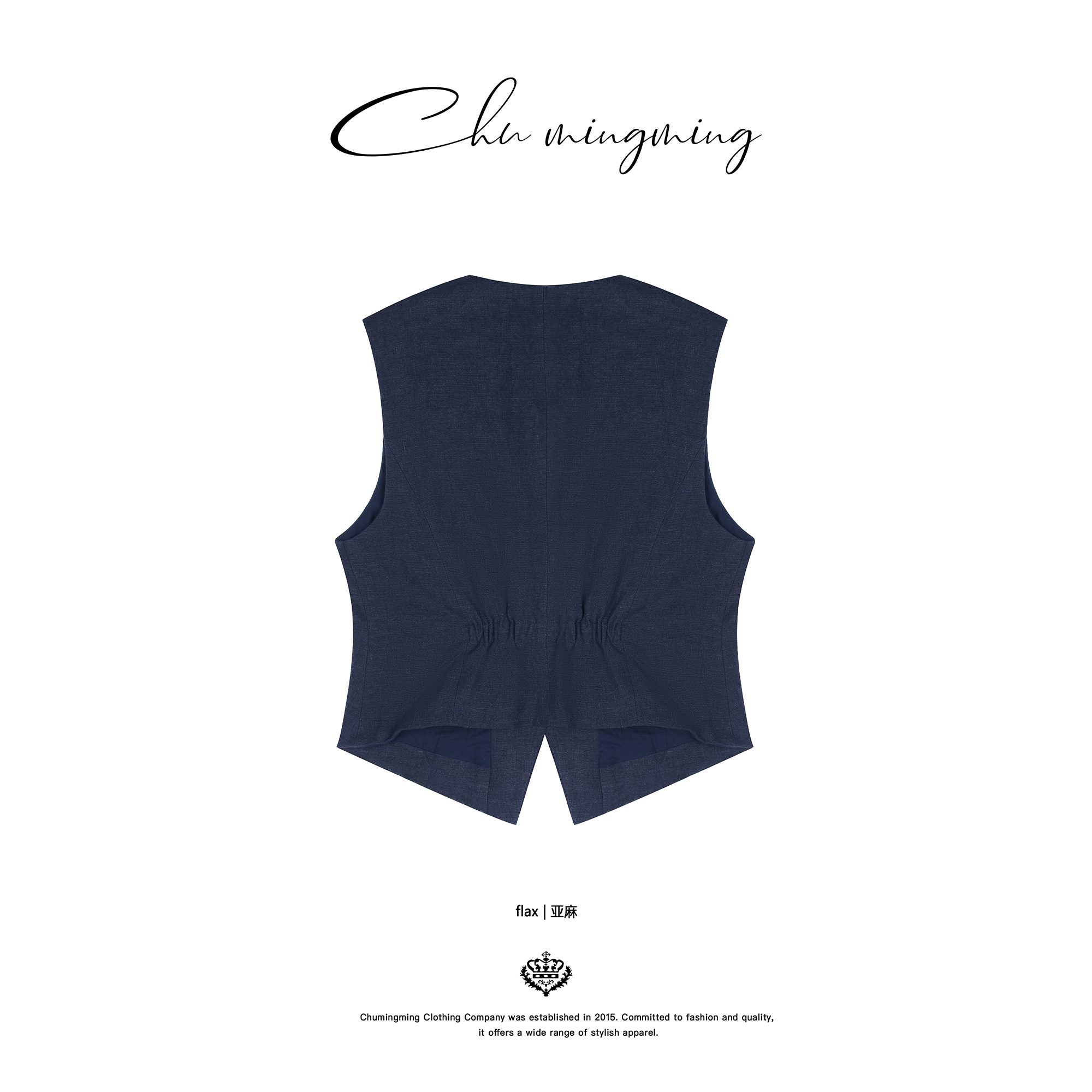 CHU楚妞亚麻短款V领马甲2025夏季新款女极简高级感老钱风坎肩背心
