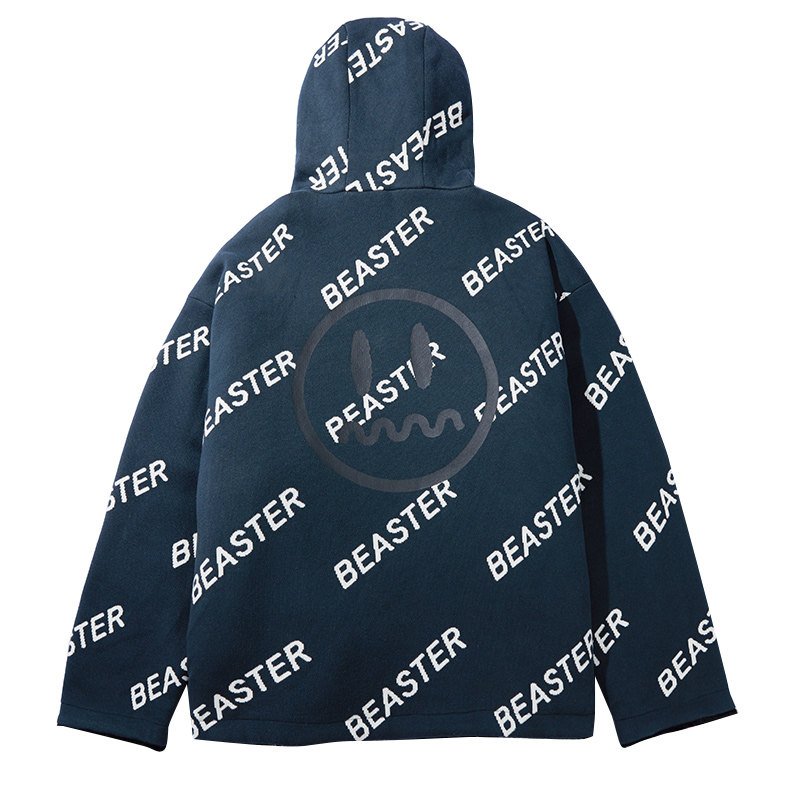 BEASTER鬼脸防风正反连帽仿羊羔绒厚外套男冬季保暖夹克女