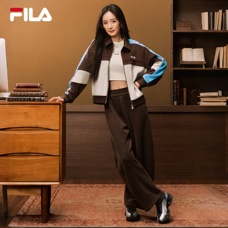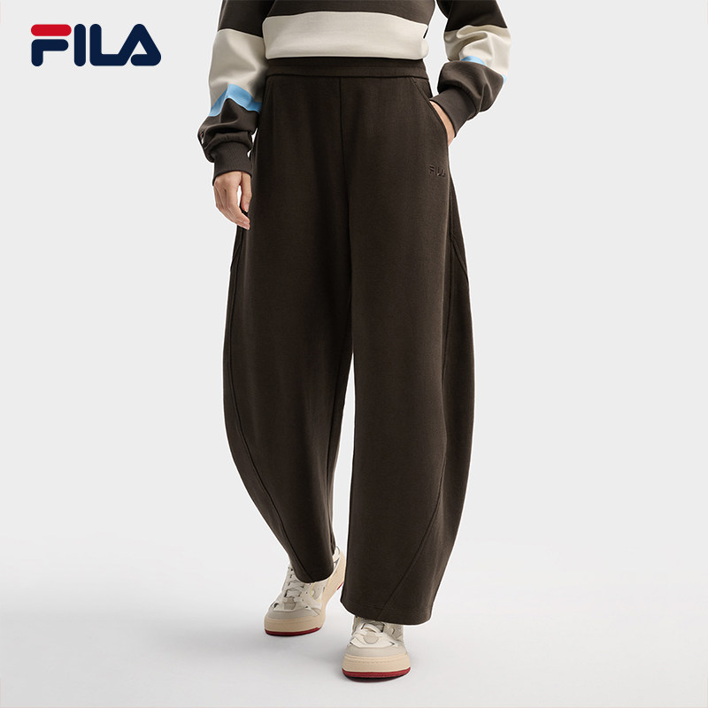 杨幂同款FILA 斐乐官方女士针织长裤春季新款裤子宽松休闲弯刀裤