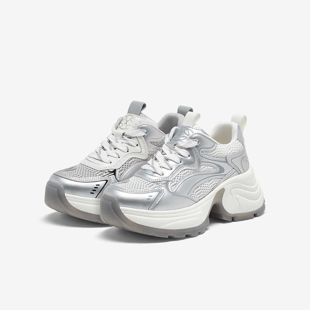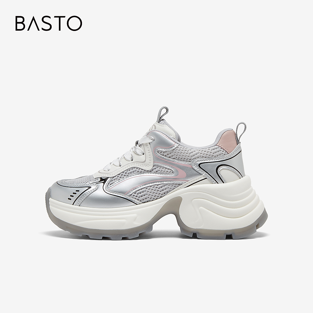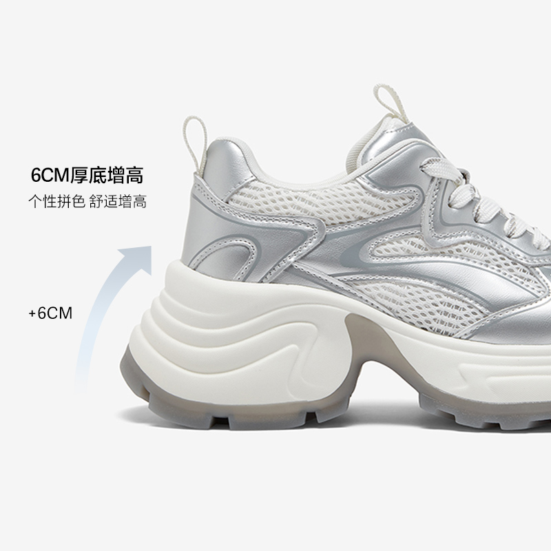 百思图24秋商场新款网面透气老爹鞋厚底增高女运动休闲鞋A6193BM4