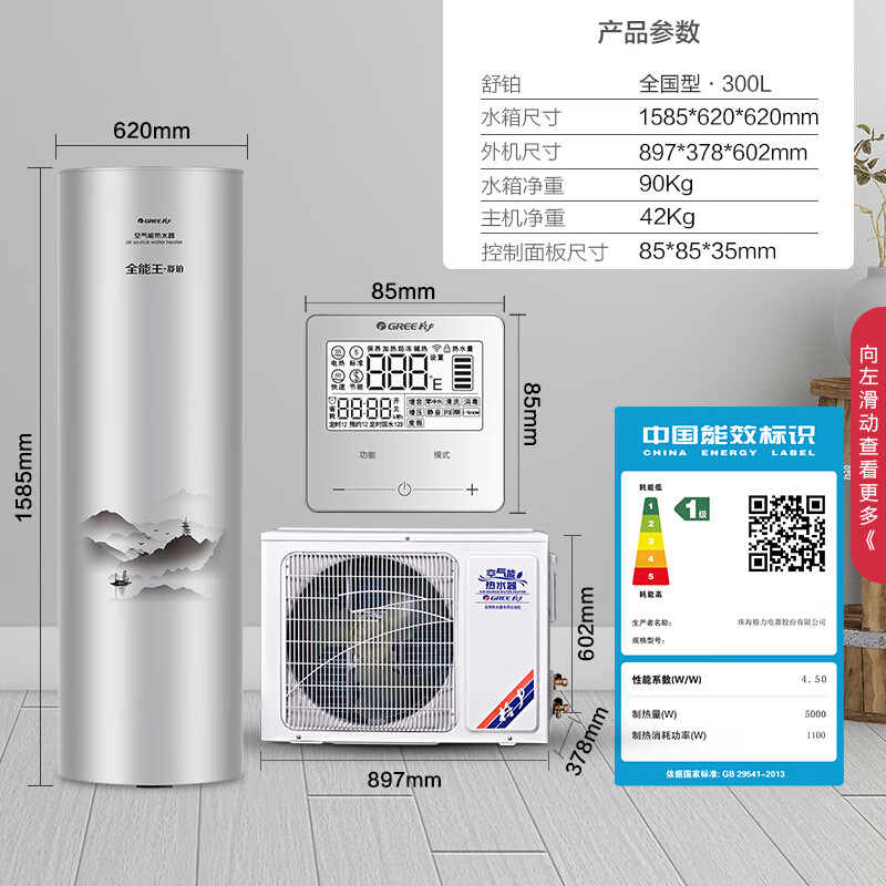格力空气能热水器变频一级能效300升L家用热泵低温运行全能王舒铂