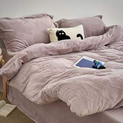 加厚10斤重牛奶绒四件套冬季珊瑚绒被套纯色双面绒被罩法兰绒床品