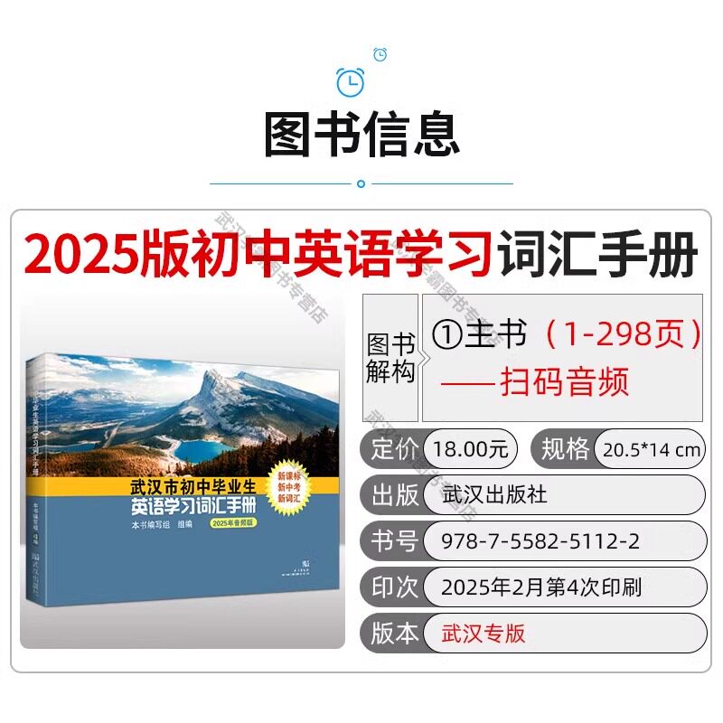 2025年武汉市初中毕业生英语学习词汇手册原词汇表升级版武汉出版社词汇表武汉毕业生人教版初中英语学业考试语法中考