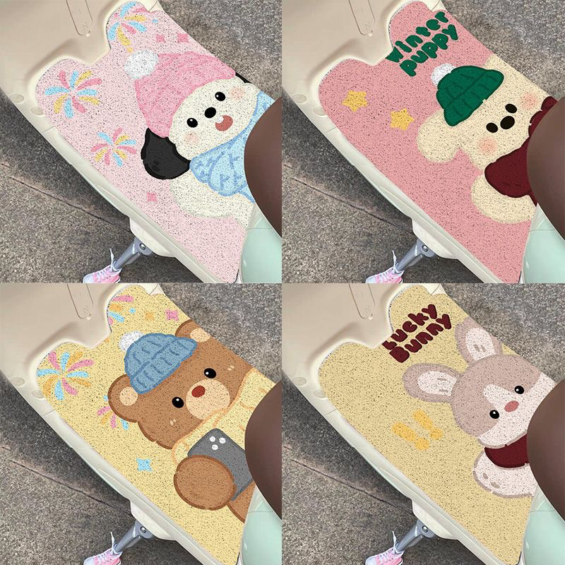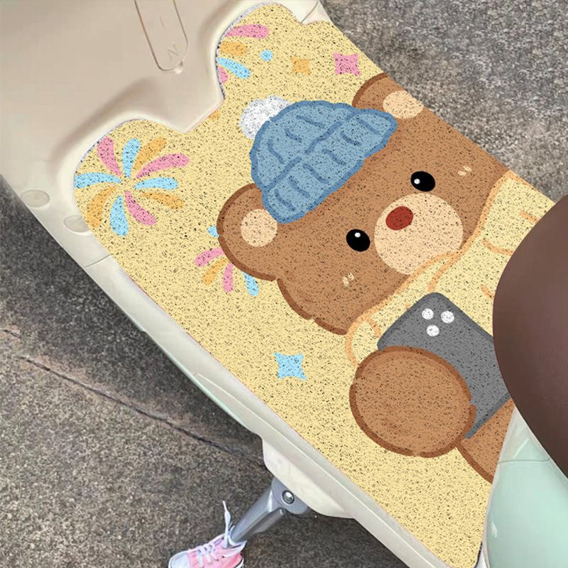 卡通小清新可爱通用型电动车脚踏板垫子丝圈方形自裁防雨蹭土脚垫