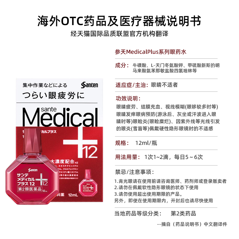 日本直邮参天Medical+眼药水滴眼液缓解眼部疲劳干涩滋润12ml*2