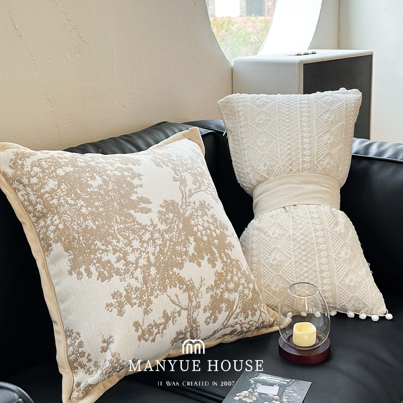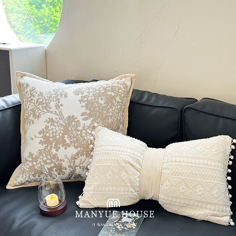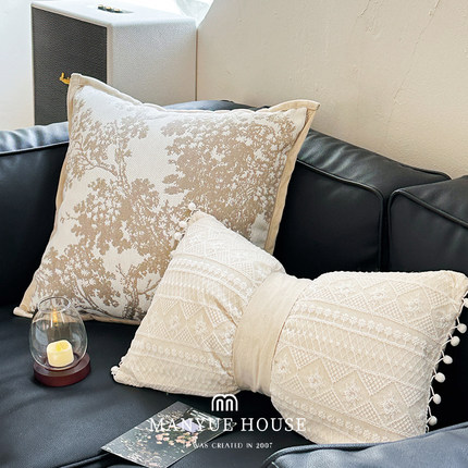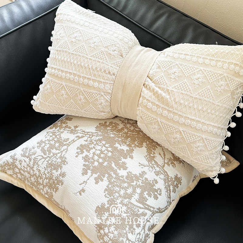 M.life 法式绣花蝴蝶结样板间抱枕靠垫床头靠背腰枕靠枕软装含芯