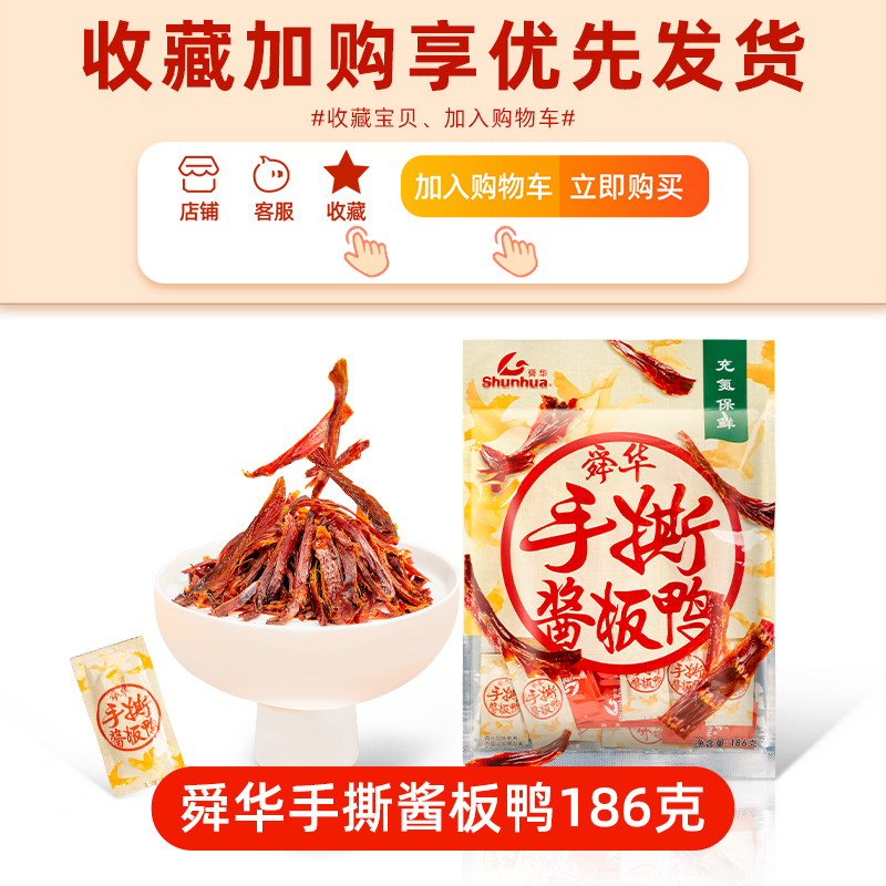 舜华充氮手撕酱板鸭正宗临武鸭湖南特产香辣卤味小包装零食186g