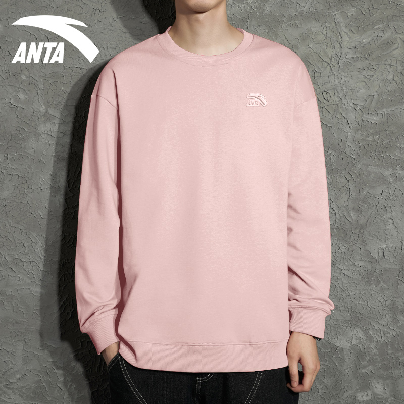 安踏卫衣男士2025冬季新款百搭复古红色圆领套头衫宽松长袖运动服