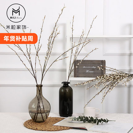 中式高枝仿真花银柳条树枝客厅室内桌面雪柳干枝桃花枝假花艺摆件