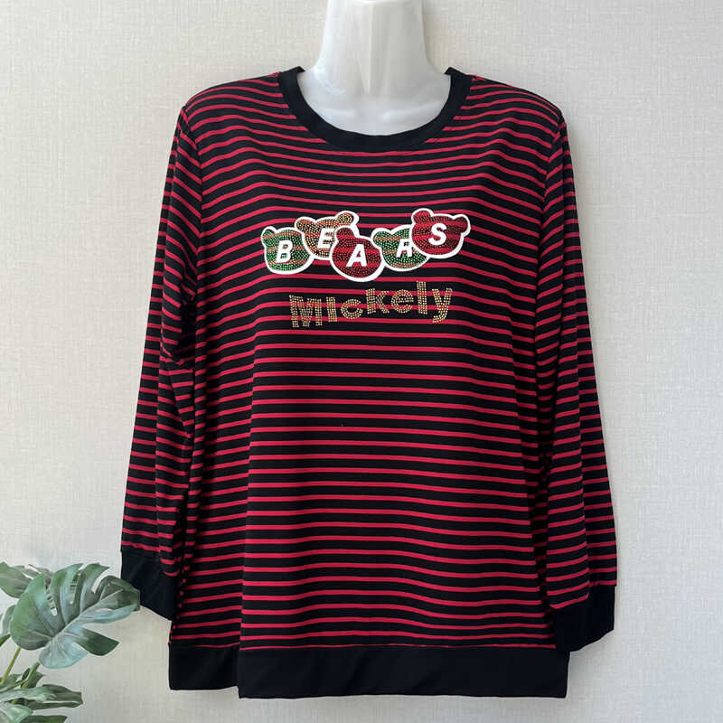 中年妈妈秋装长袖T恤大码时尚莫代尔条纹打底衫宽松显瘦200斤上衣