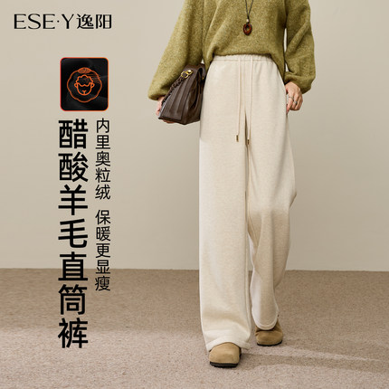 逸阳醋酸羊毛窄版阔腿裤女2025冬新款加绒高腰垂感休闲糯米直筒裤