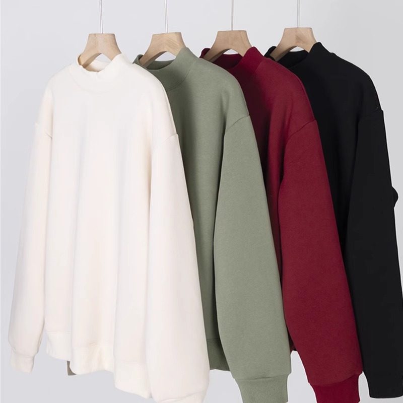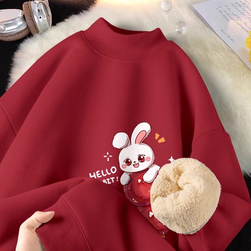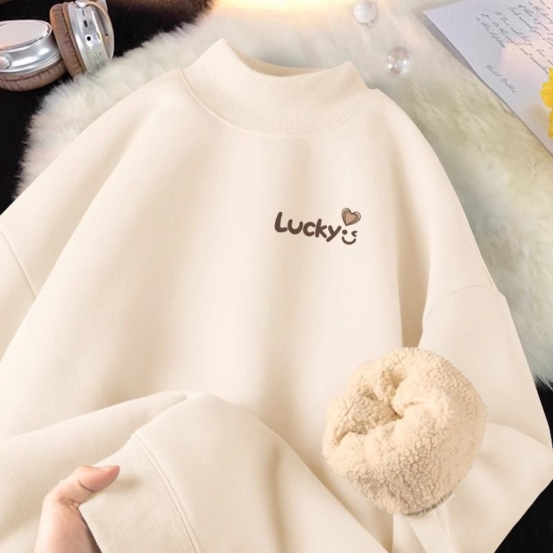 加绒圆领卫衣女2024新款爆款女款羊羔绒半高领上衣小个子时尚洋气
