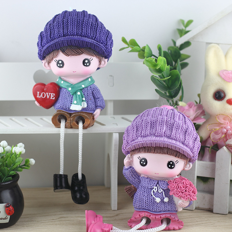 新款创意浪漫情侣吊脚娃娃居家桌面摆件 结婚生日礼物树脂工艺品