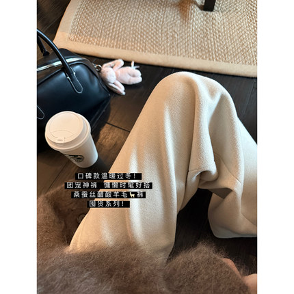 大小姐77团宠神裤!升级桑蚕丝醋酸羊毛混纺阔腿裤秋冬加厚羊毛裤